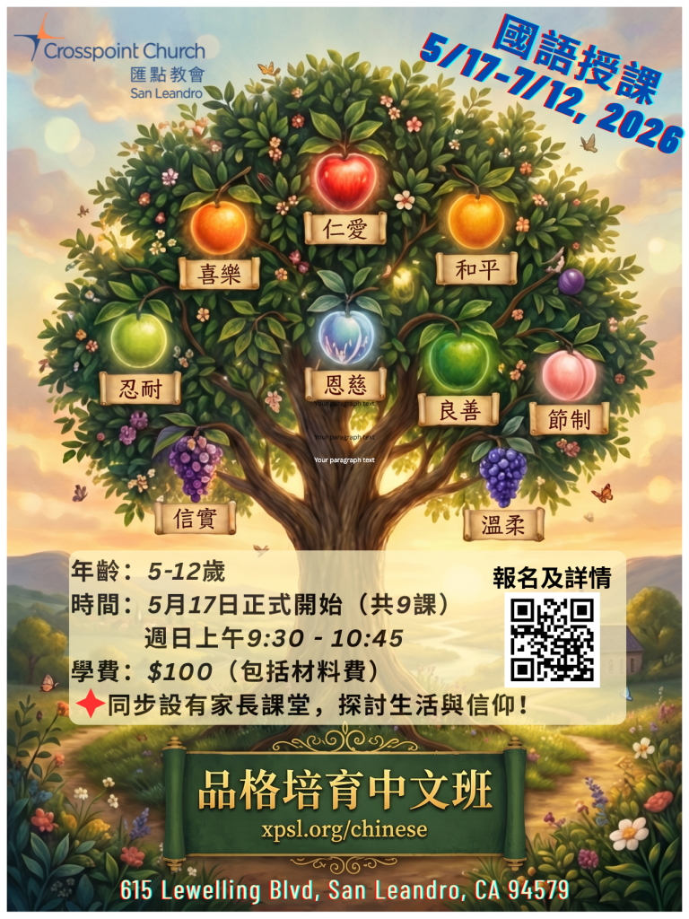 Crosspoint 101, Alpha, AC problem, CBSCL Spring 2026 courses, San Leandro townhall, CCCC health insurance talk, The Book of James bible study, Lunar new year celebration, 123 Let's Go, Mary Cheung, One Team One Dream, Pastor Chan Chi Ming