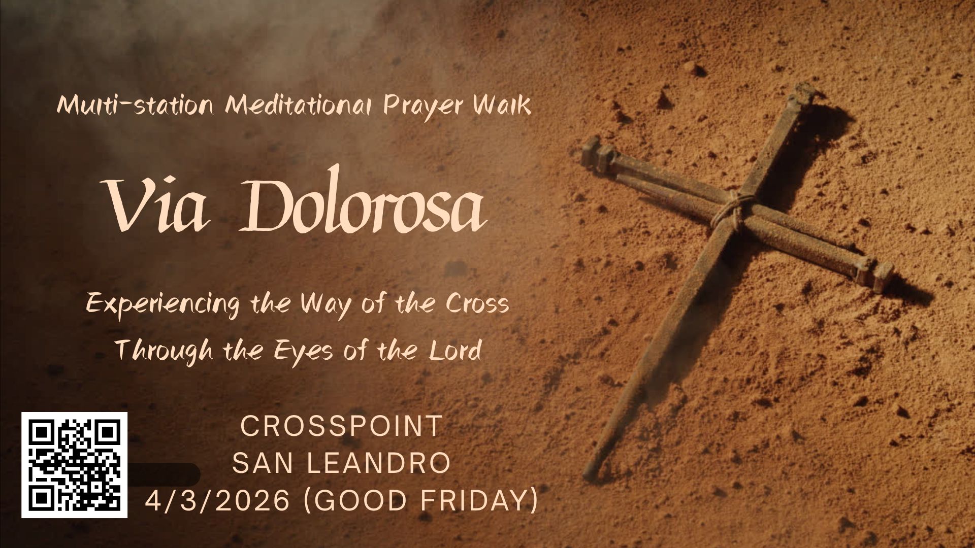 On Good Friday (4/3/2026) afternoon and Saturday (4/4/2026) morning, the San Leandro campus will host the Via Dolorosa, an exhibition-style multi-station meditational prayer walk.