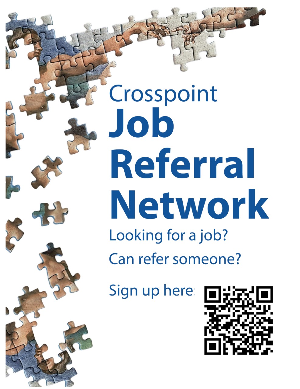 Crosspoint Church is launching a community-driven Referral Network to help our members connect, support one another, and open doors to new careers. Visit here to learn more.